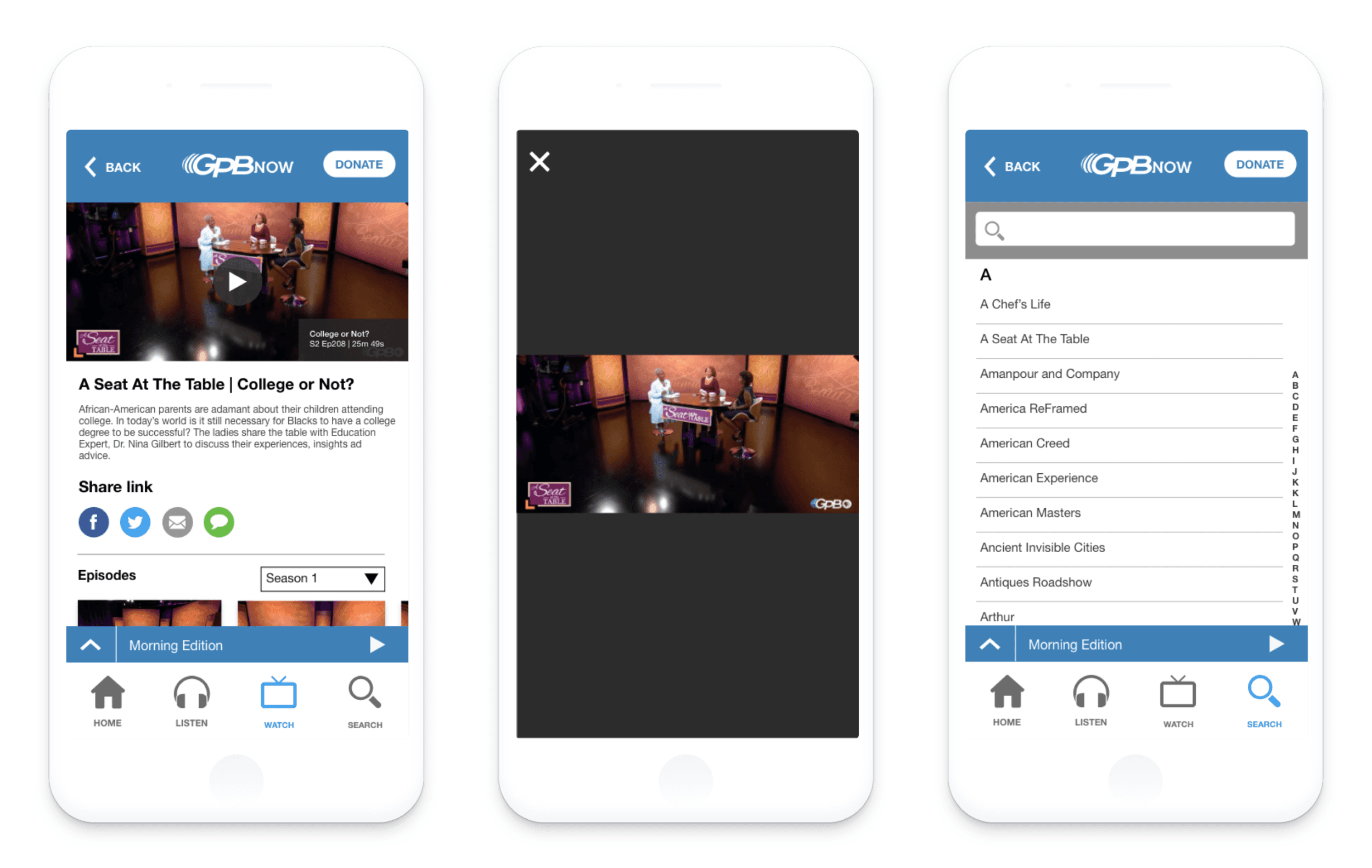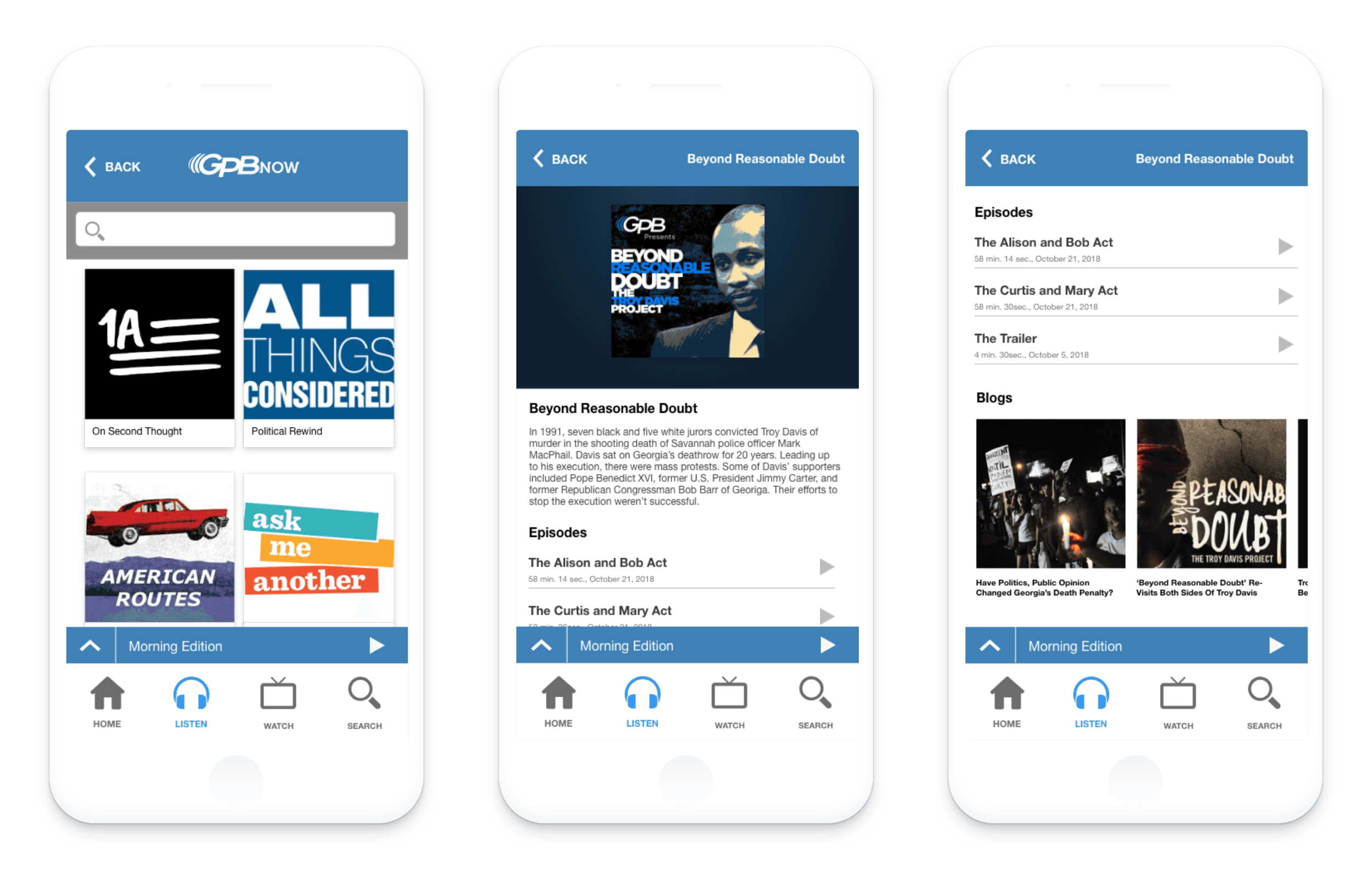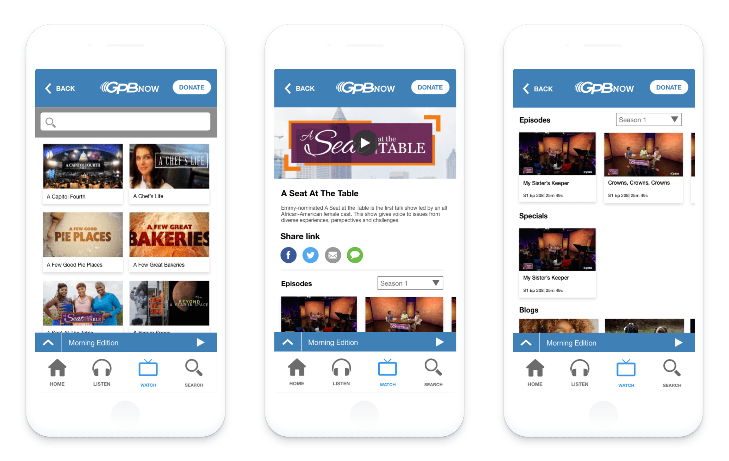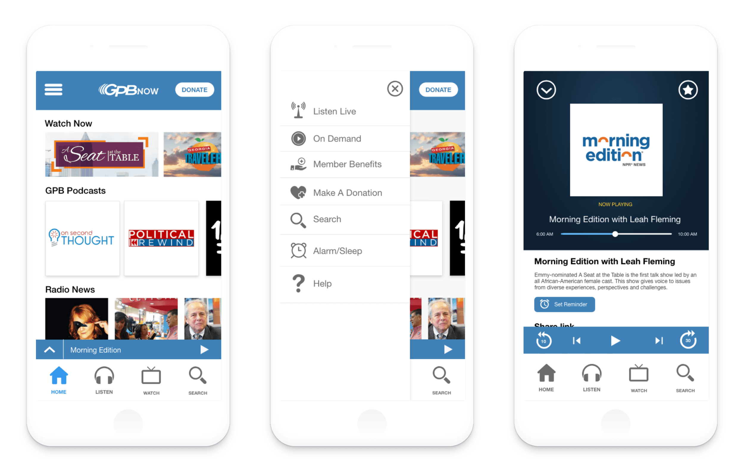 A concept design for a seamless, custom-built experience that brings GPB’s TV and radio content straight to mobile.