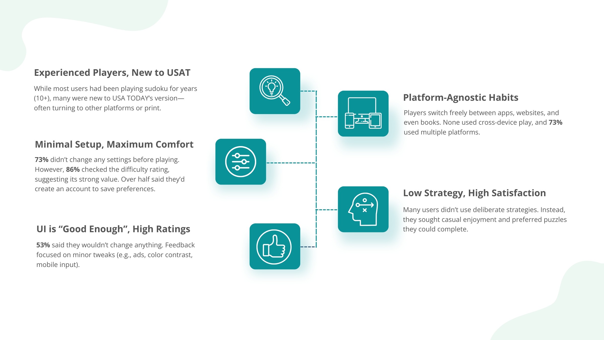Despite the popularity of USA TODAY Sudoku, the old experience lacked visual consistency with other games, possessed several UI bugs and feature errors, and offered limited personalization. Before redesigning, we needed to understand: