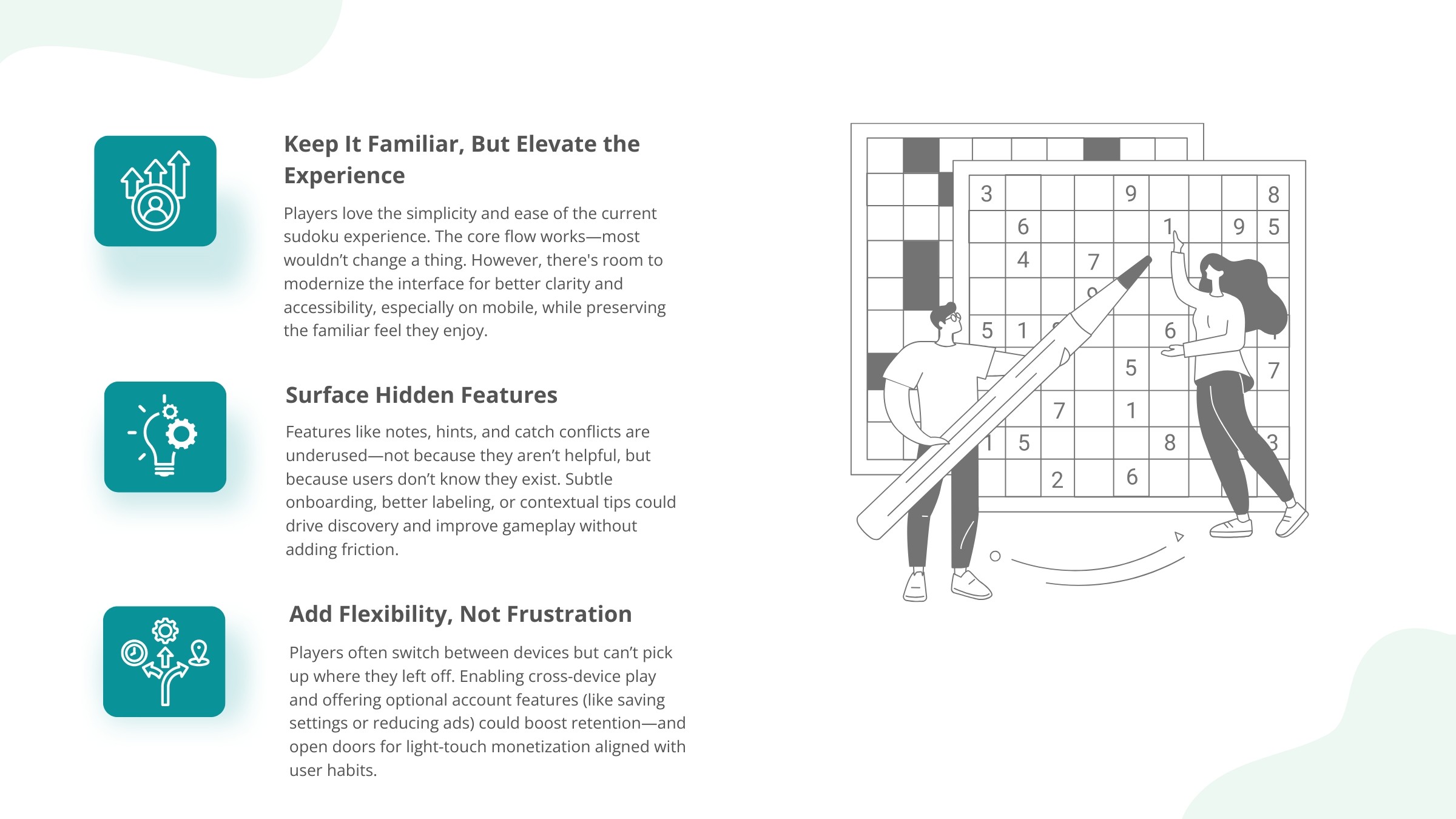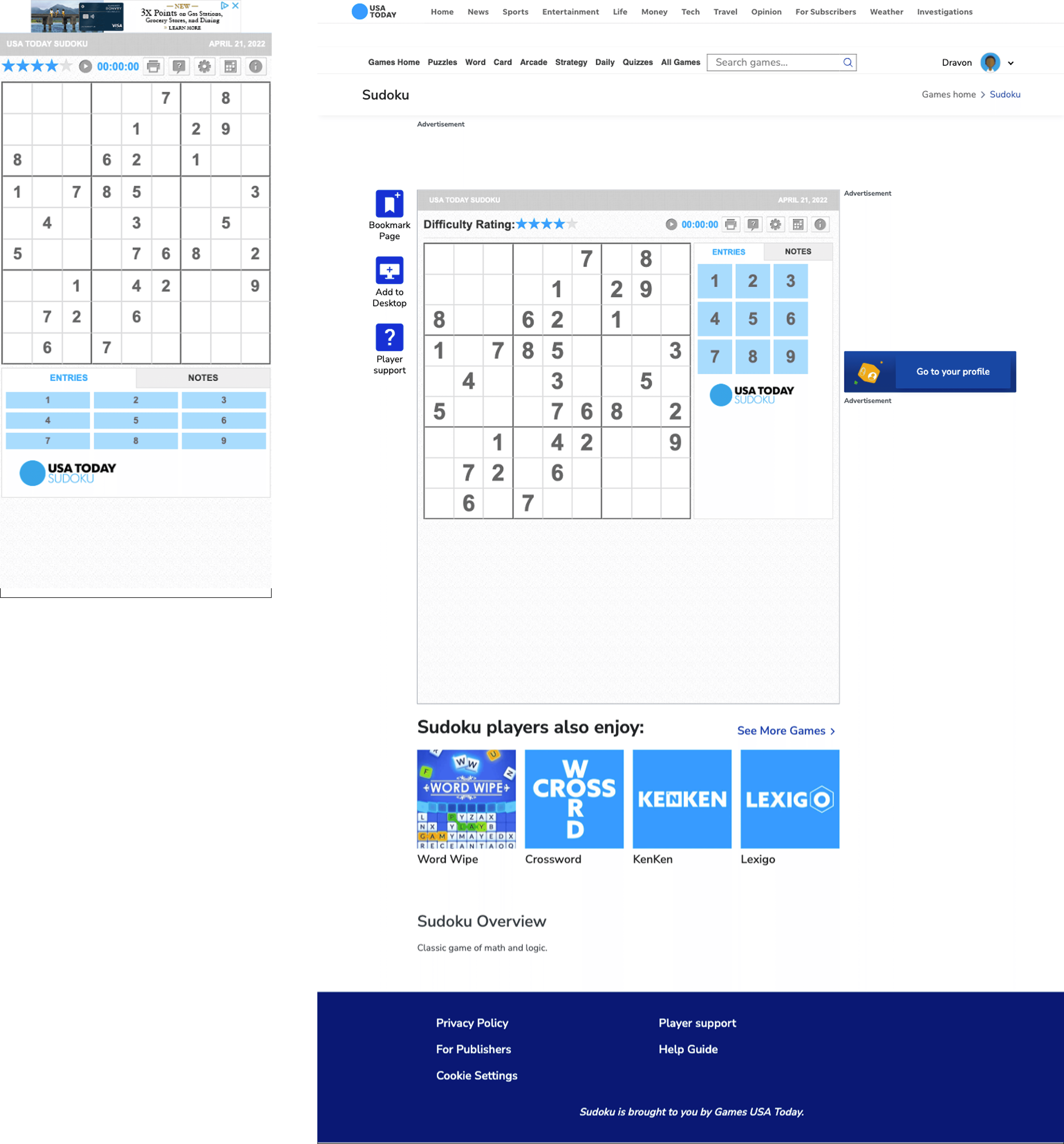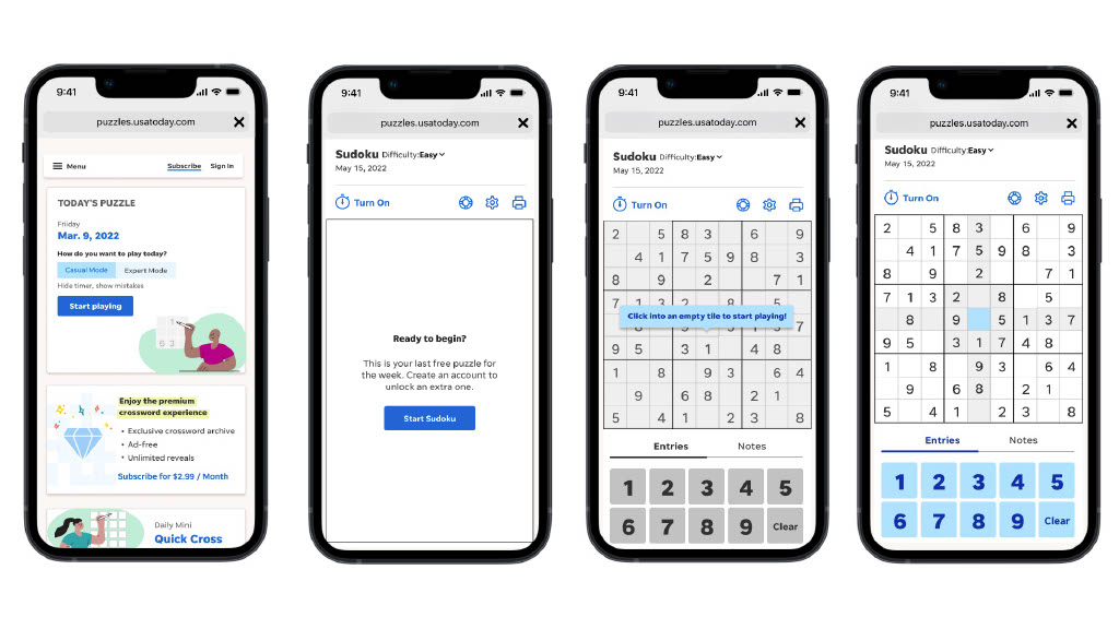 Following a successful redesign of the crossword experience in 2021, the PDUX team set out to refresh the USA TODAY Sudoku interface. The goal: align the look and feel with the broader games platform and explore monetization potential through user insights.